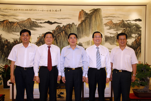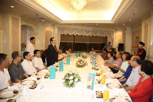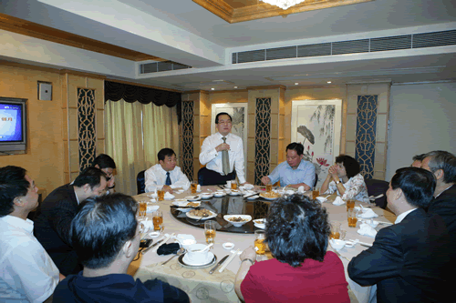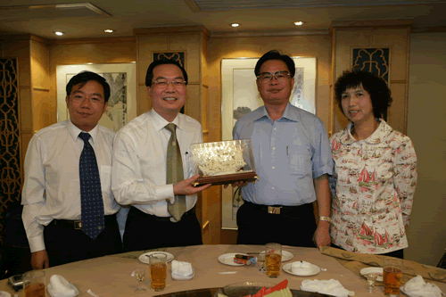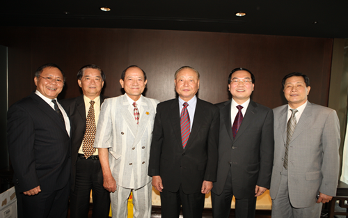 | 會長 許智銘博士(右二)宴請中共廣西自治區區委曹伯純書記(左二),廣西壯族自治區李金早副主席(左一)和自治區統戰部姜興和部長(右一)一行