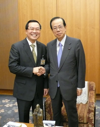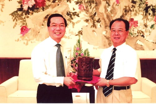 | 越南社會主義共和國副總理武寬 (右)親切接見了 許智銘博士(左)一行,並
