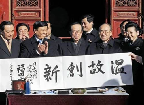 | 中共廣西自治區區委曹伯純書記(前排左二)為會長 許智銘博士(前排右二)的著作《探索和實踐》題詞
