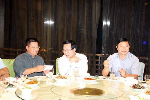 廣西壯族自治區副主席李今早,自治區統戰部部長姜興和,宣傳部副部長崔智友,區港澳辦主任黃永強,區招商促進局局長張振東,共青團區委書記余遠輝,中共廣西區委副秘書長譚勇、蘇海棠,北海巿副巿長莫樺,欽州巿副巿長于海峰,貴港巿代巿長賴德榮,中共賀州巿委書記李達球,區統戰部處長劉流等出席了宴會。 |