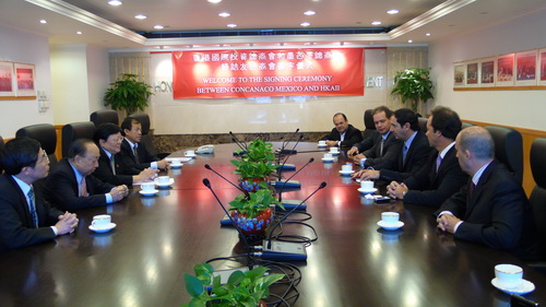許智銘博士(前排右二)代表雙方簽定了「合作開發仁會經濟區投資備忘錄」 。 |