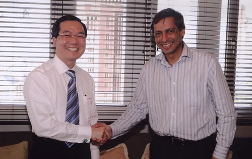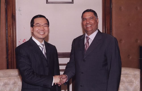 | 毛里求斯副總理兼旅遊休閒部長杜瓦爾(右)親切接見和熱情接待許智銘博士(左)。 |