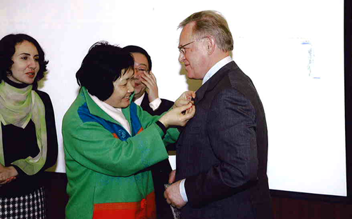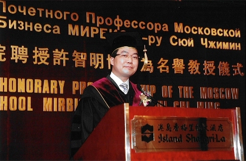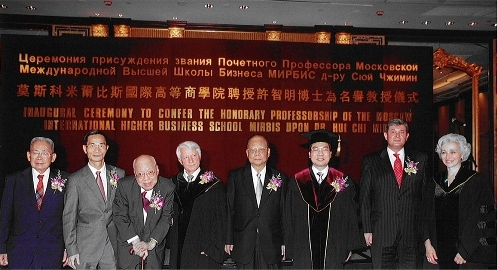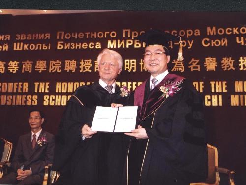 | 在俄羅斯莫斯科米爾比斯國際高等商學院 名譽教授聘授儀式上,