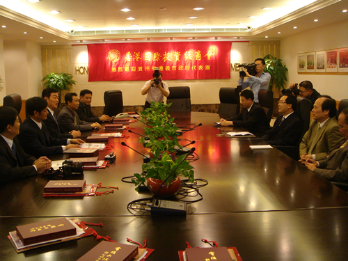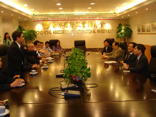 2005 年 8 月 26日,香港國際投資總商會會長許智銘博士,副會長梁仲景先生,在本會會所熱情地接待了參加「廣西港澳周」的廣西貴港巿賴德榮巿長率領的貴港巿政府代表團,雙方進行了認真的介紹各交流。 |