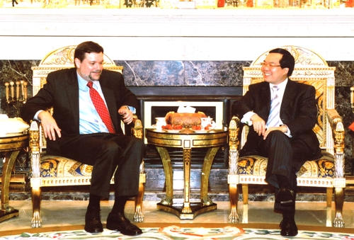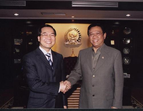 二零零五年八月下旬,對中國進行國事訪問的印尼總統蘇西洛,在深圳五洲賓館親切接見了全國政協委員、中國光彩事業促進會副會長、香港國際投資總商會會長許智銘博士,並進行了友好的會談。 |
