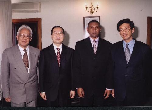 | 馬達加斯加共和國 外交部長馬塞爾‧蘭傑瓦(右)親切接見了許智銘博士(左)一行,並進行親切友好的會談。 |