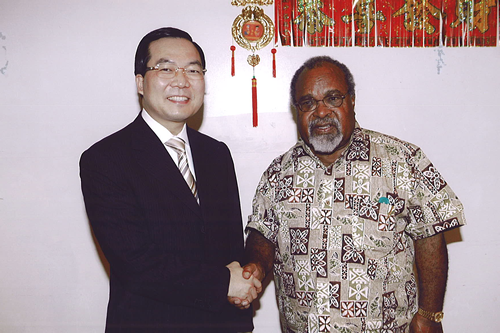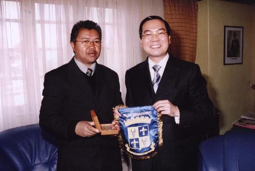 | 馬達加斯加共和國參議院議長居伊.拉杰米松.拉庫圖馬哈魯(右)親切接見了許智銘博士(左),並進行親切友好的會談。 |
