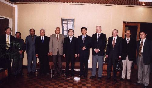 | 馬達加斯加共和國中央銀行行長嘉斯通‧拉厄洛雅奧納(左五)在央行親切接見許智銘博士(右六)一行,並舉行了會談。 |